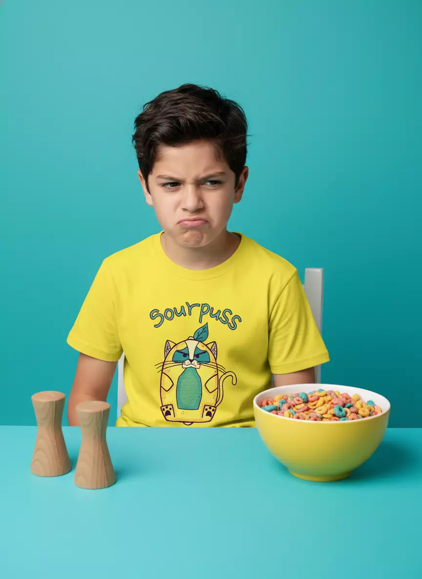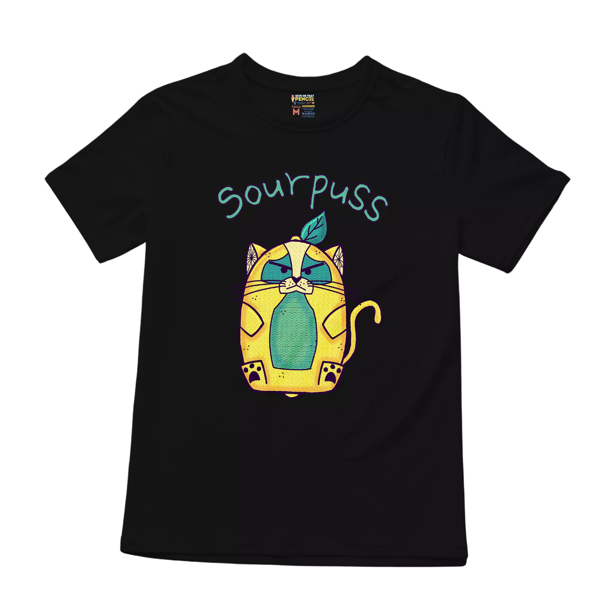 Un gato con cara de limón más ácido que tu peor día. Si te identificas con este minino malhumorado o solo amas los juegos de palabras, este diseño es para ti.