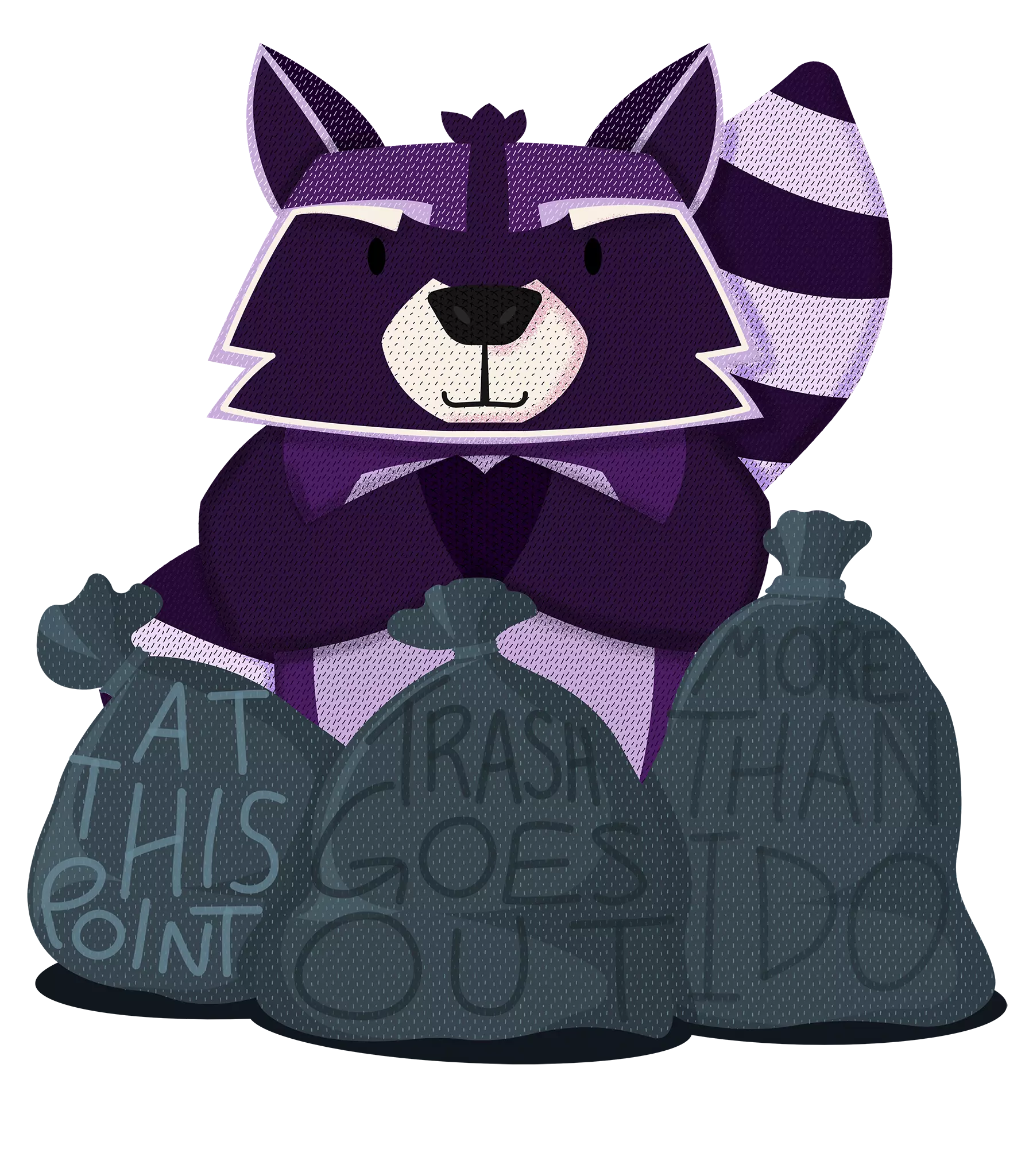 Este mapache sabe que incluso los botes de basura reciben más visitas que tú. Para amantes del humor sarcástico y los mapaches. ¡Póntelo y presume tu vida antisocial con estilo!