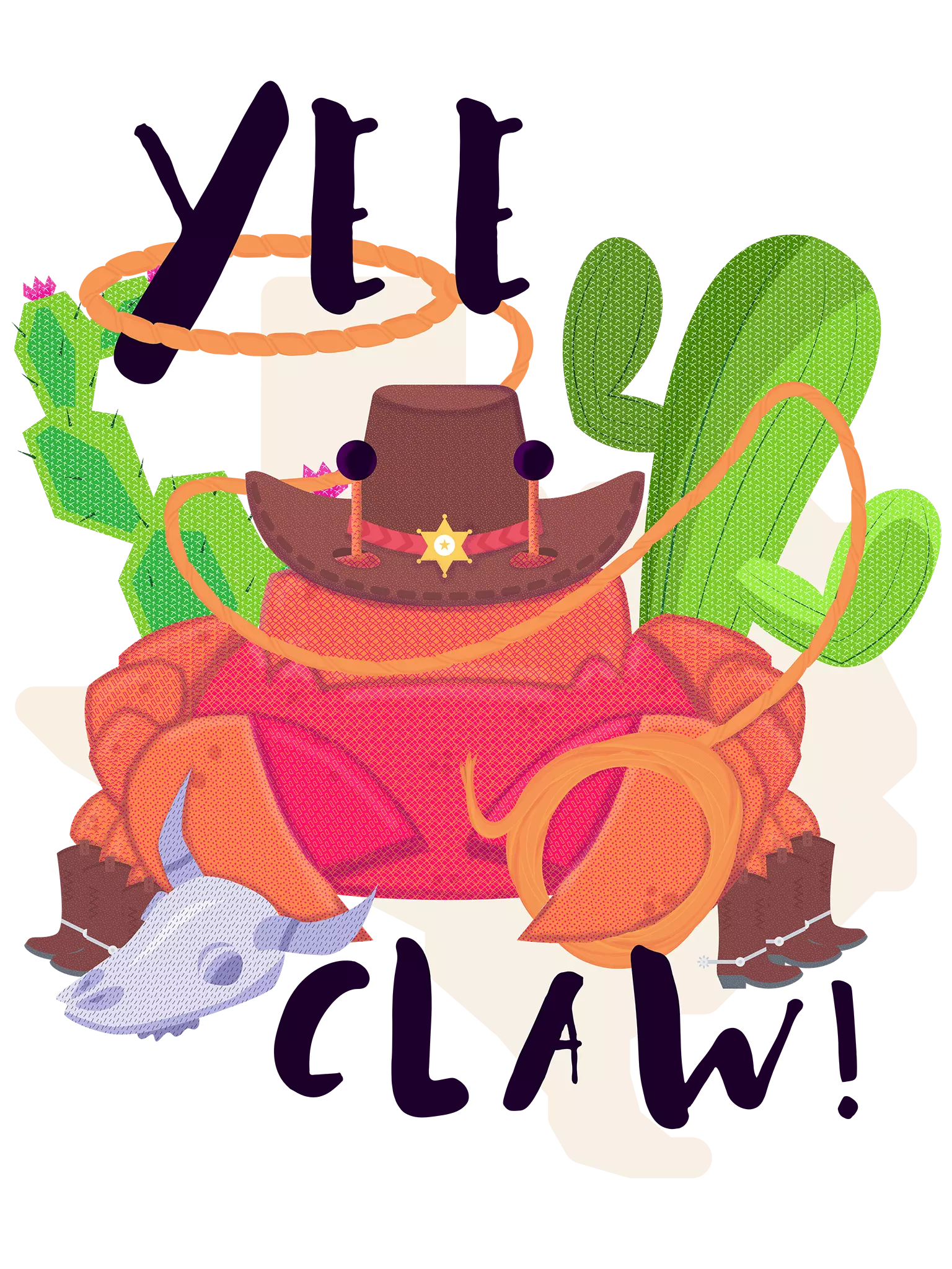Este cangrejo del oeste sabe que ser un cowboy no es solo cosa de mamíferos. Ideal para amantes del mar y el estilo vaquero. ¡Súbete al rodeo con pinzas y actitud ruda!