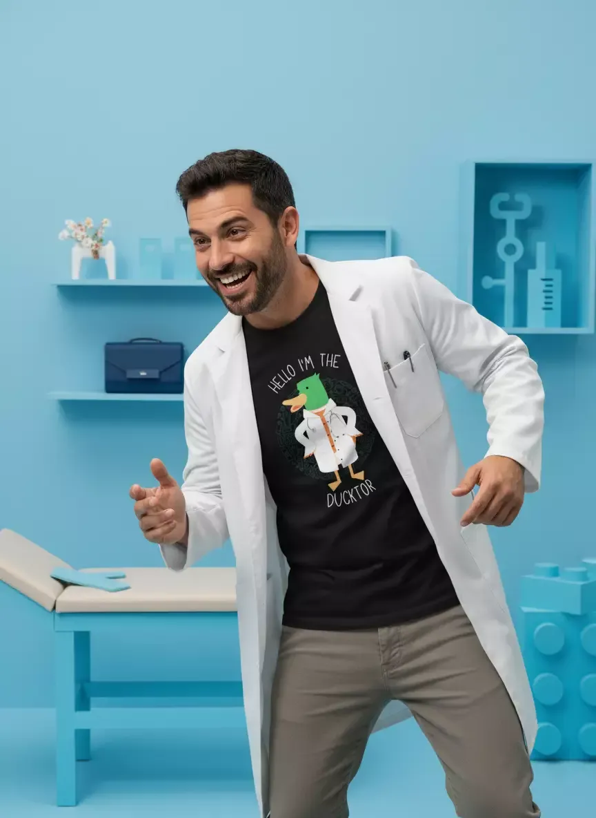 Este doctor pato tiene el remedio perfecto: ¡una dosis de buen humor! Ideal para médicos, veterinarios y fanáticos de los juegos de palabras. Úsalo en el hospital, en la escuela o simplemente para hacer reír a todos a tu alrededor.
