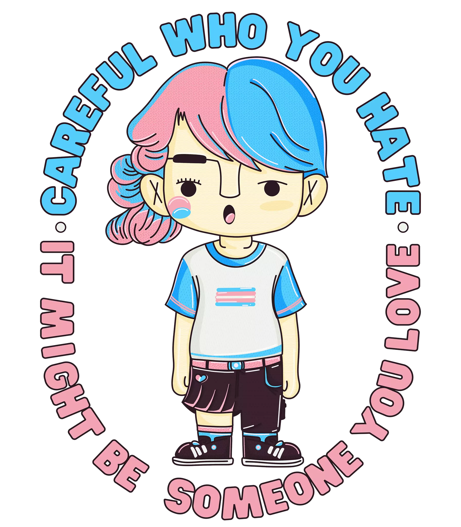 Un mensaje de inclusión y reflexión en un diseño lleno de color. ¡Amemos más y odiemos menos!