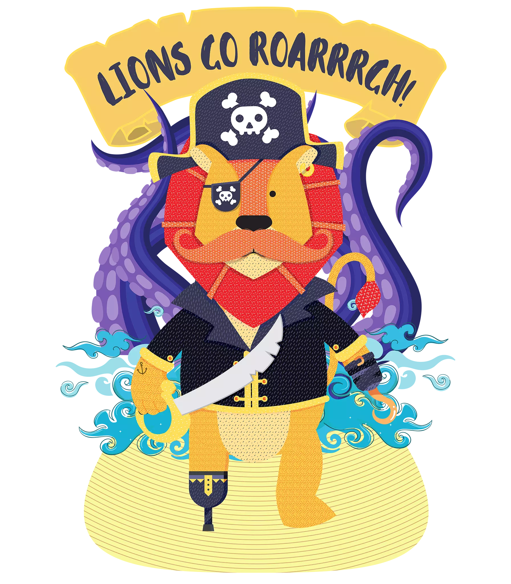 Este león pirata está en busca de tesoros… ¡y presas! No te preocupes, solo quiere que te unas a su tripulación. Ideal para amantes de la aventura, el mar y los chistes de piratas. Úsalo y demuestra que tienes espíritu de capitán. ¡León a la vista, sube a bordo!