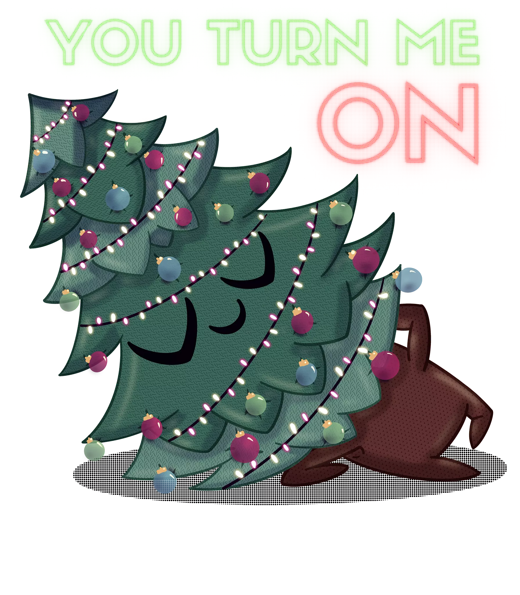 Un pino navideño coqueto iluminado con luces de colores. Perfecto para quienes aman la Navidad con un toque pícaro.